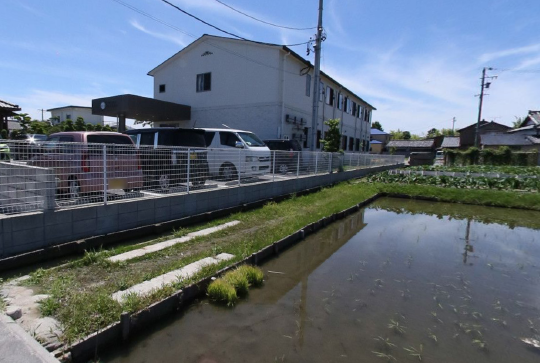静かな環境に囲まれた施設の周りには田んぼや畑があります。天気の良い日には散策して楽しみます。